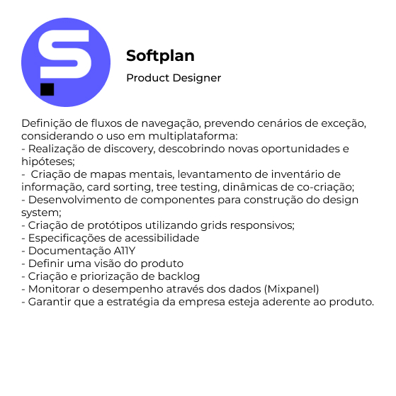 - Crio especificações e componentes para tornar o seu produto digital inclusivo.